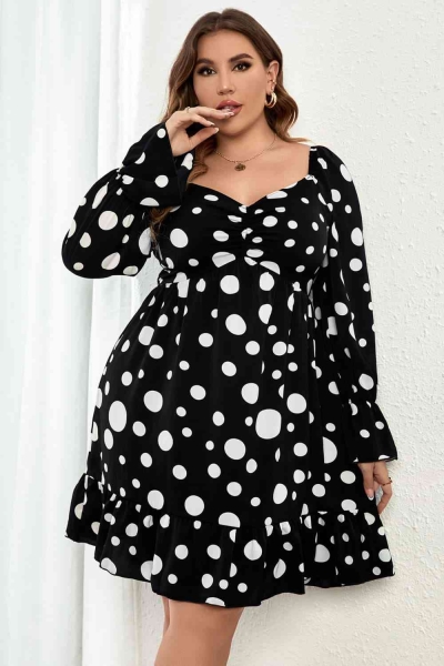 Melo Apparel Plus Size Polka Dot Sweetheart Neck Flounce Sleeve Mini Dress