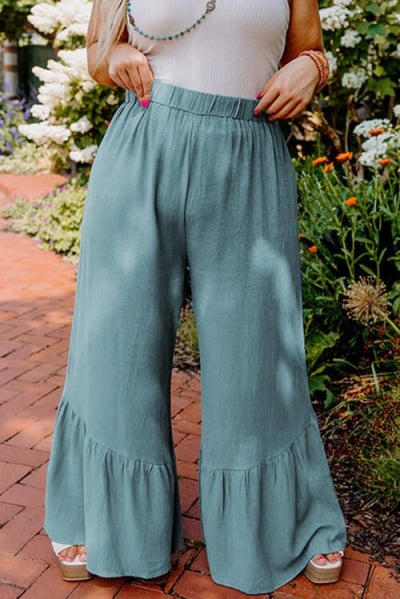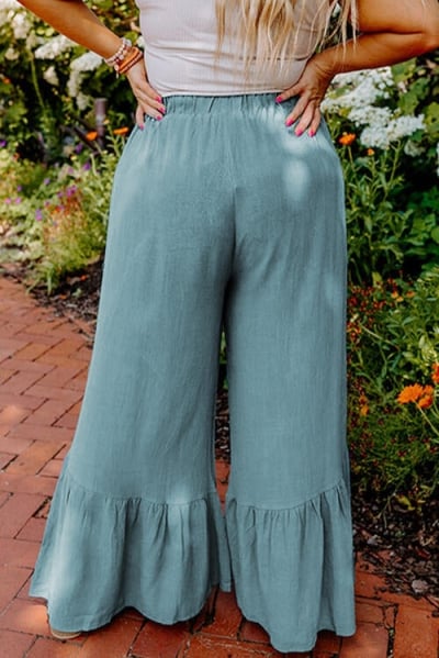 Plus Size Ruffle Hem Wide Leg Pants