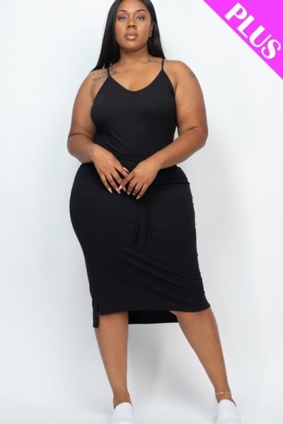 Plus Size Front Tied Ribbon Midi Dress